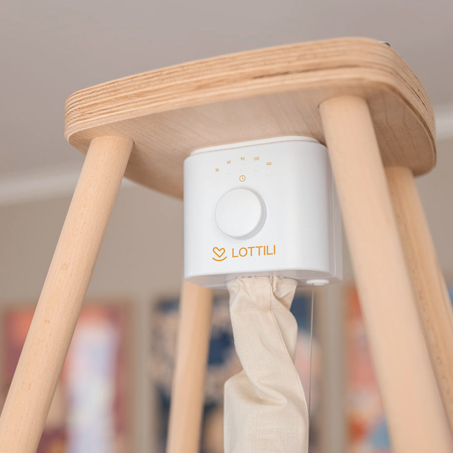 We have developed a unique motor because it is the only self-learning motor in the world. Baby Hammock Motor on the market. It is infinitely adjustable and intuitive to use. Using intelligent software, the motor learns the vibration you set it to in a matter of seconds. It simply rocks the baby to your rhythm. The rhythm in which you rock and soothe your baby is the best for your child. The Baby Hammock adopts this rhythm exactly. This strengthens your baby's confidence and gives it an all-round feeling of security, even if it is in the Baby Hammock lying down. For this reason, the baby in the Baby Hammock from Lottili quickly calms down and feels particularly safe.